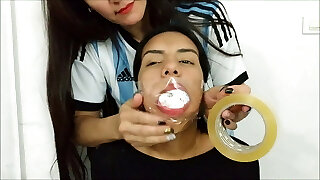 Sexy Girl Gagged With 10 Socks By Hot Latina Milf