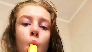 Two ash-blonde Tall Lesbian Girls with long Legs Play each other with Dildo