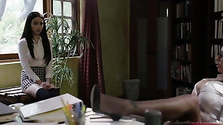 Young assistant seduces MILF lesbian and licks her moist fuckbox