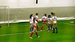 Horny slim lesbians have hot nude struggling on boxing ring