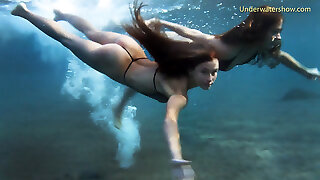 Naughty juicy babe in the pool and lesbians in sea on Tenerife