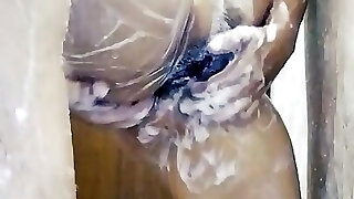 Desi girl dancing in shower and flashing her giant boobs in bathroom.