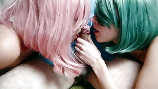 долгое облизывание члена, двойной минет, поцелуи со спермой