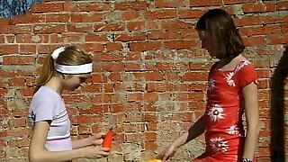 девушки увлекаются сценой жесткого реалити-траха с игрушками